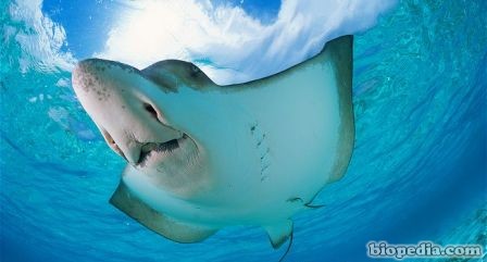 Biología. Grandes grupos de rayas jaspeadas pueden verse fuera de la temporada de reproducción. Nadan cerca de la superficie y ocasionalmente, se pueden verse saltando fuera del agua. Las hembras dan a luz alrededor de 4 crías vivas.